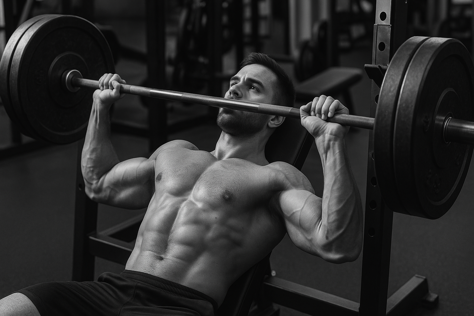 - Barbell Bench Press: 4 sets × 4–6 reps